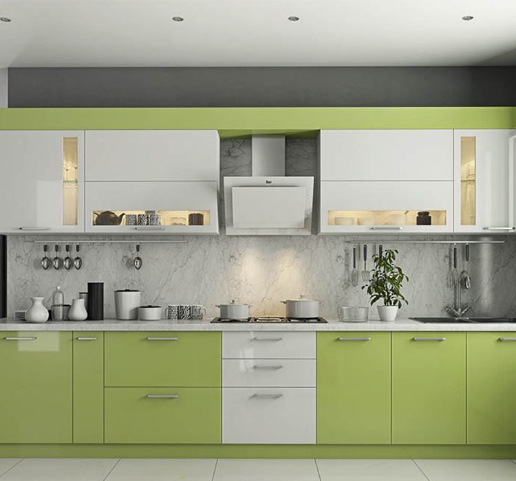Alea’s straight modular kitchen design is one of the best and most purposeful layouts ever built. Popularly called the one-wall kitchen, it is a perfect layout for sophisticated residential areas. The kitchen triangle set out strategically on one wall saves space and cost.